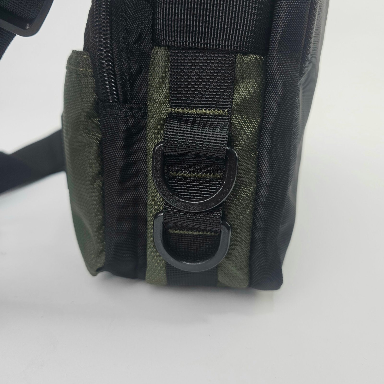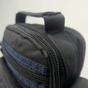 يشمل تصميمها المتين أيضًا أحزمة كتف قابلة للتعديل لتناسب مختلف أحجام الجسم، بالإضافة إلى جيوب داخلية وخارجية إضافية لتوفير مساحة تخزين مثالية. تُعزز الأبازيم المعدنية من مرونة الحقيبة، إذ تسمح بإضافة ملحقات أو تثبيتها على الحزام.
