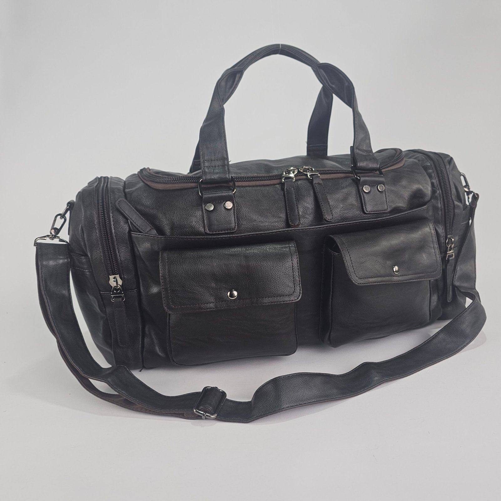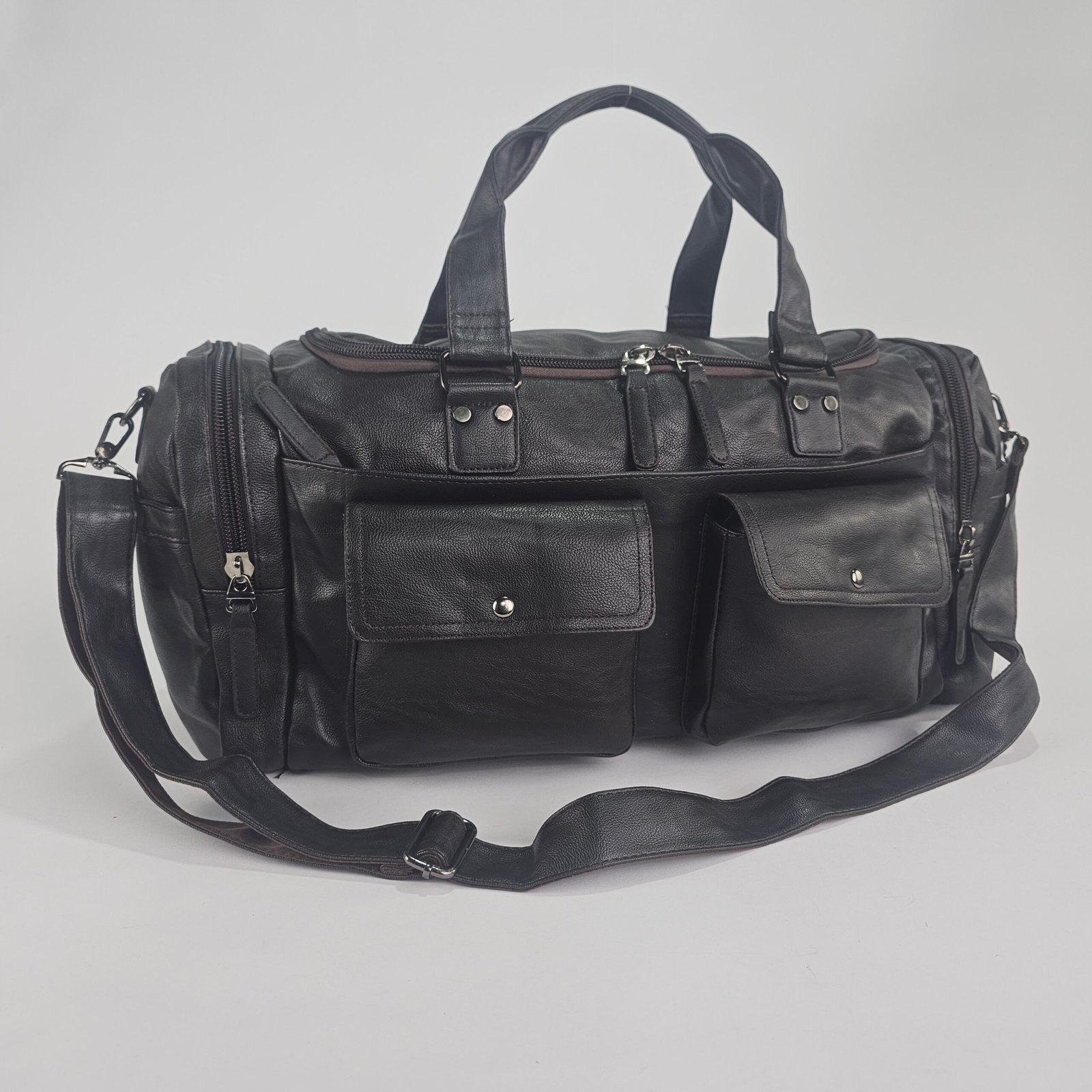 صُنعت هذه الحقيبة من جلد متين مقاوم للماء، وهي مصممة للحفاظ على رونقها مع مرور الوقت. متوفرة بأربعة ألوان رائعة – الأسود، والبني، والرمادي، والبني الشوكولاتة – لتجسد الأناقة في جميع المناسبات. أبعادها الكبيرة (60 سم × 27 سم × 25 سم) تمنحكِ عملية لا مثيل لها، مما يسمح لكِ بتنظيم وحمل أغراضكِ بكل سهولة، سواءً للعمل أو السفر أو الرياضة.