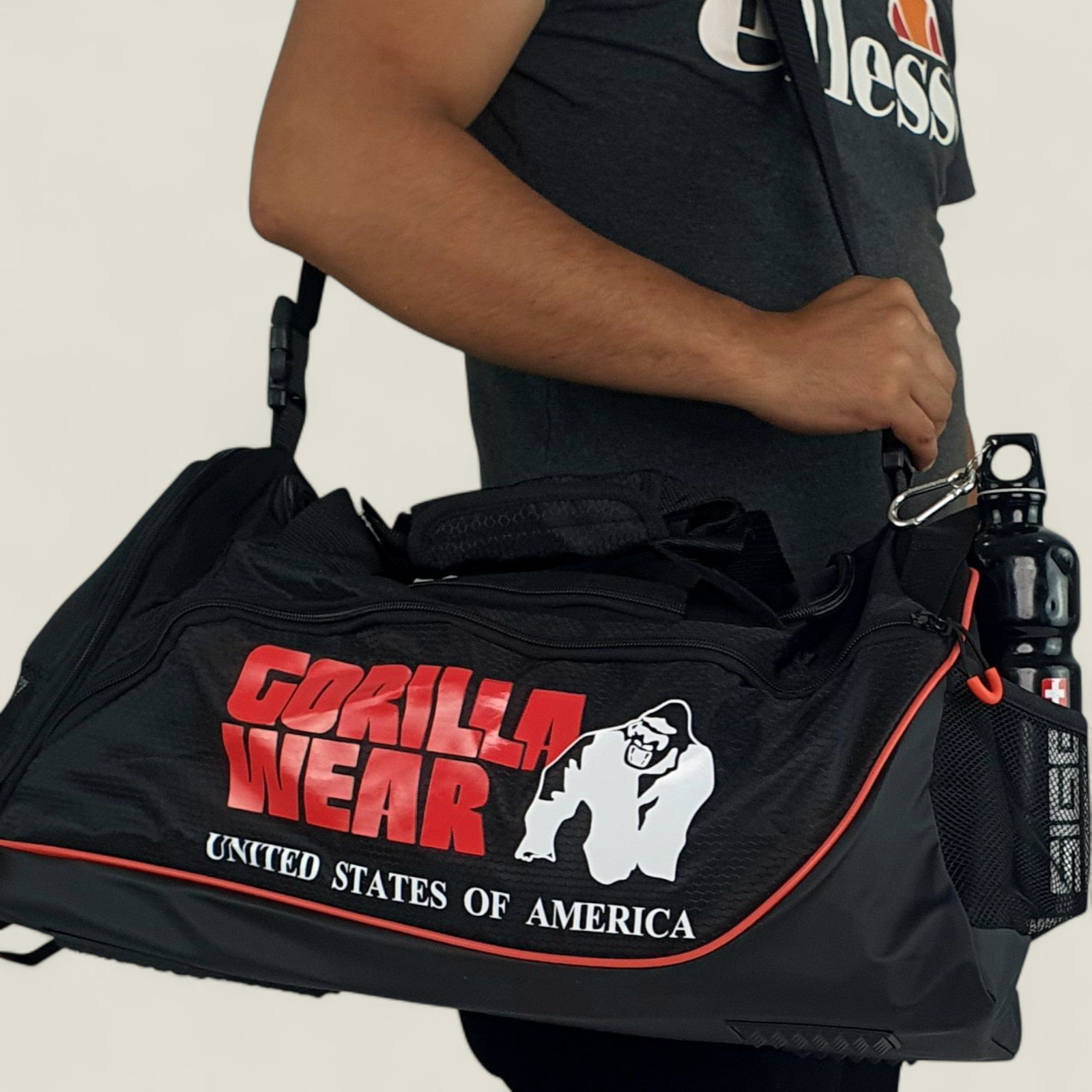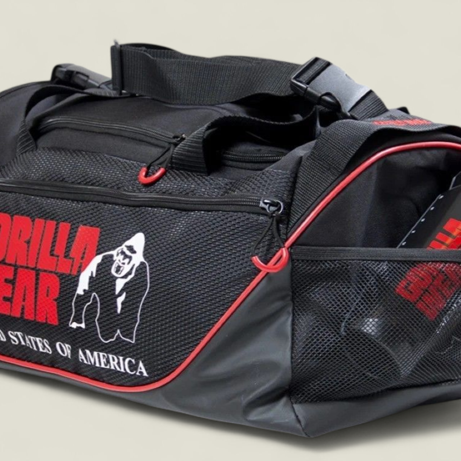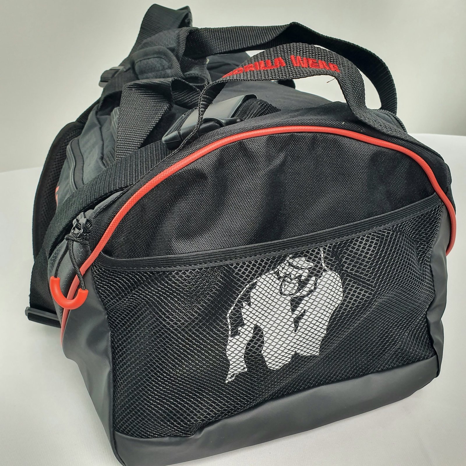 The GORILLA WEAR Jerome Gym Bag in Black/Red is designed to revolutionize the way you transport your gym essentials. With an impressive 41.5-liter capacity, it offers ample space to store all your gear, from workout clothes to accessories. The spacious main compartment is complemented by multiple pockets for seamless organization, ensuring everything has its rightful place. Whether it’s clothes, shoes, or personal items, this bag has you covered.