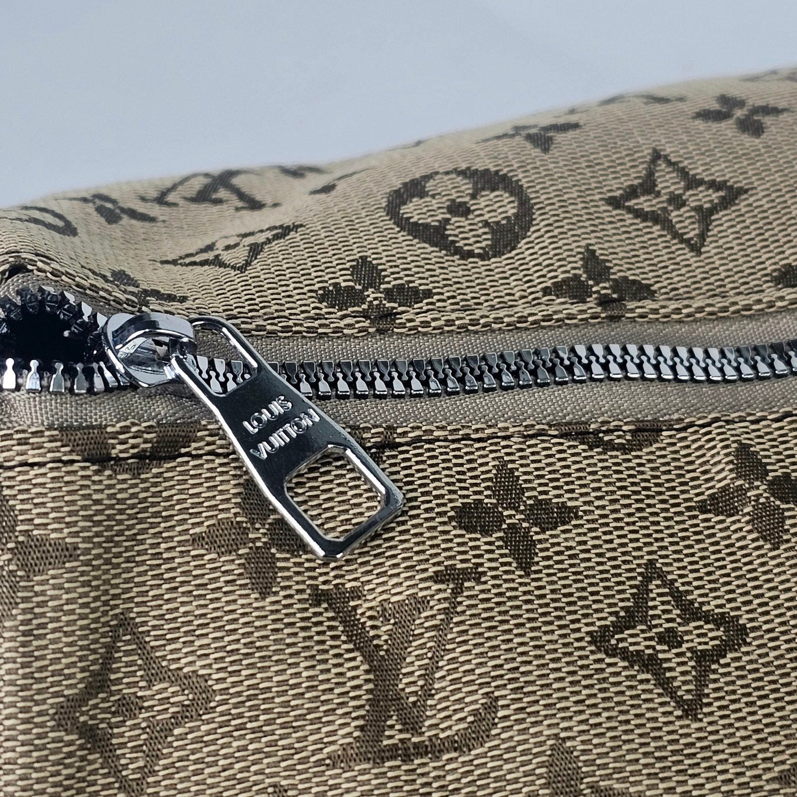 حقيبة ساك بولوشون غري: صُممت هذه الحقيبة من قماش متين عالي الجودة، ومزينة بشعار لويس فويتون الشهير باللونين الأسود والأبيض، ما يمنحها سحراً خاصاً. يوفر حزامها القابل للتعديل ومقبضها الصغير خيارات حمل متعددة، بالإضافة إلى سحاب معدني متين. أما من الداخل، فهي مبطنة بقماش داكن اللون، وتضم جيوباً عملية للأغراض الصغيرة.