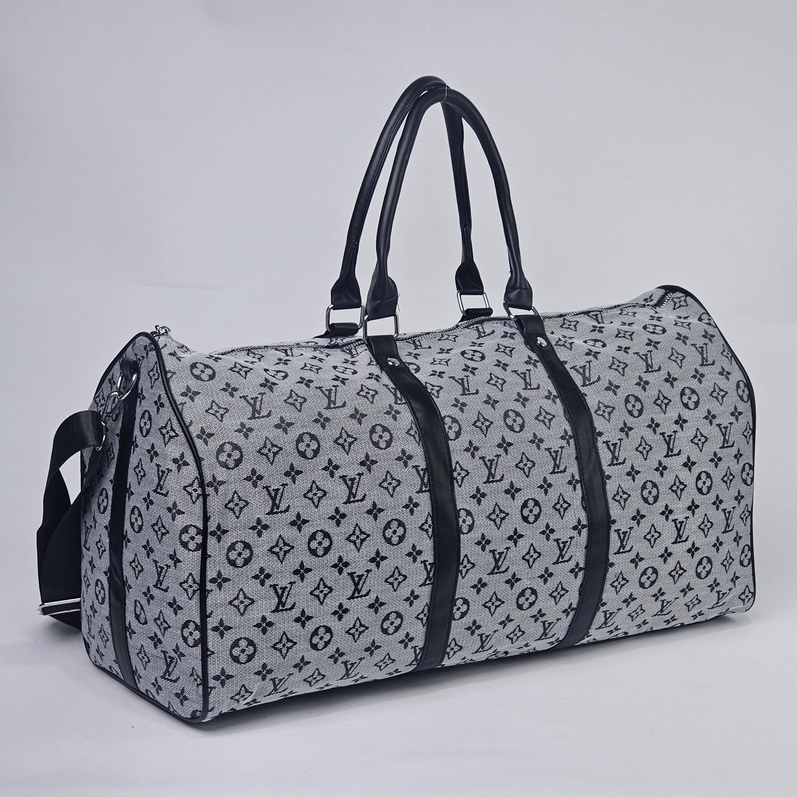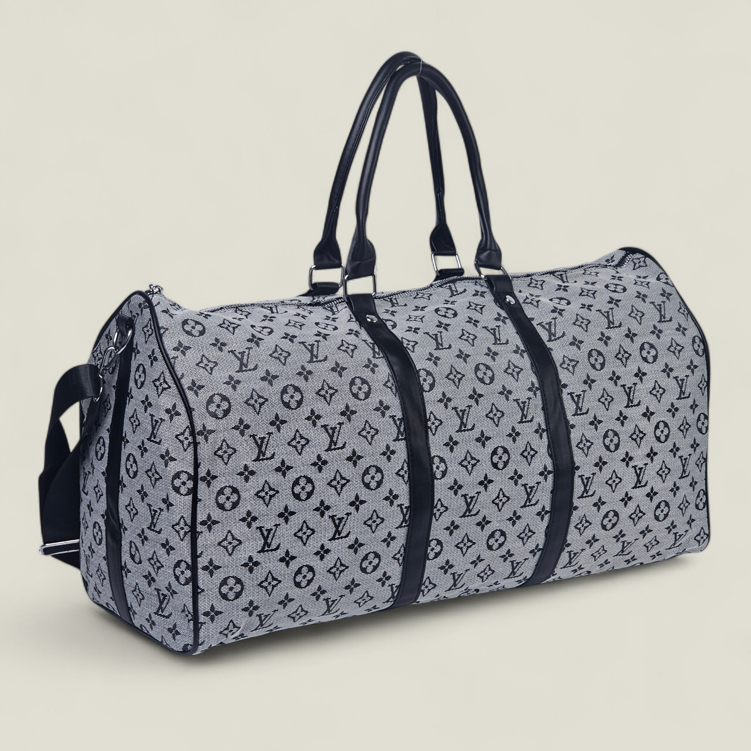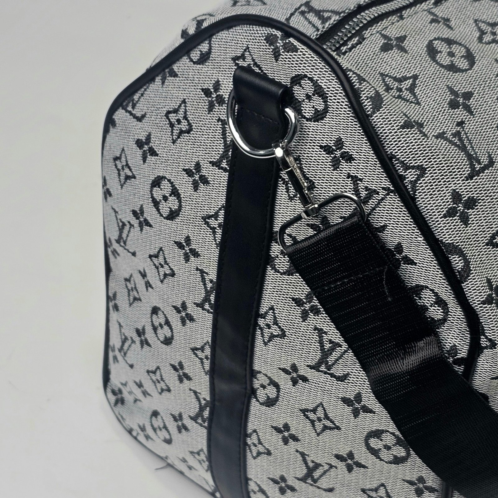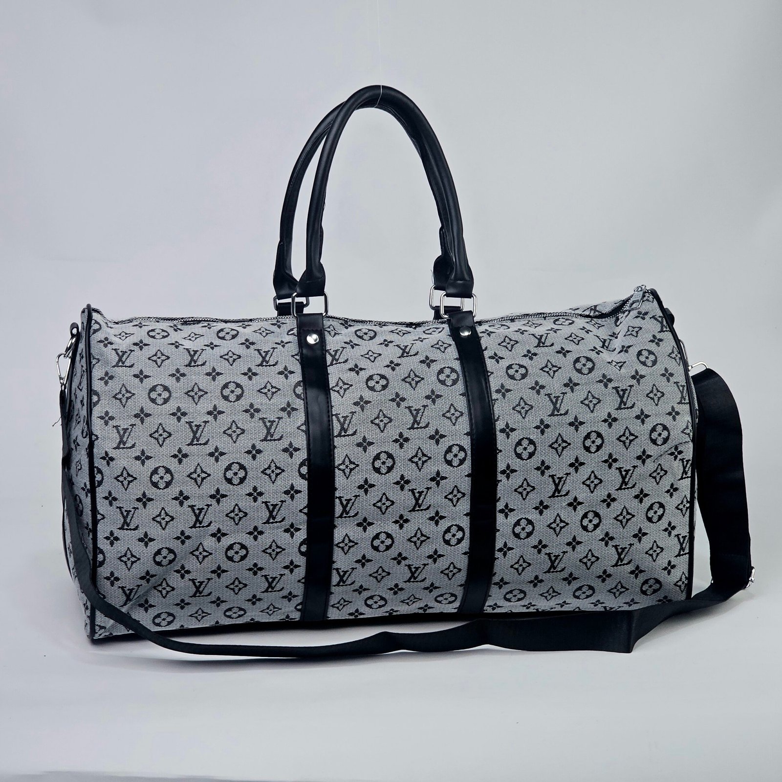 Sac Polochon Gris: Designed with reinforced high-quality canvas and adorned with the iconic Louis Vuitton monogram in black and white, this bag exudes charm. Its adjustable strap and compact handle provide versatile carrying options, complemented by a durable metal zipper closure. The interior is lined with dark fabric, featuring handy pockets for small essentials.