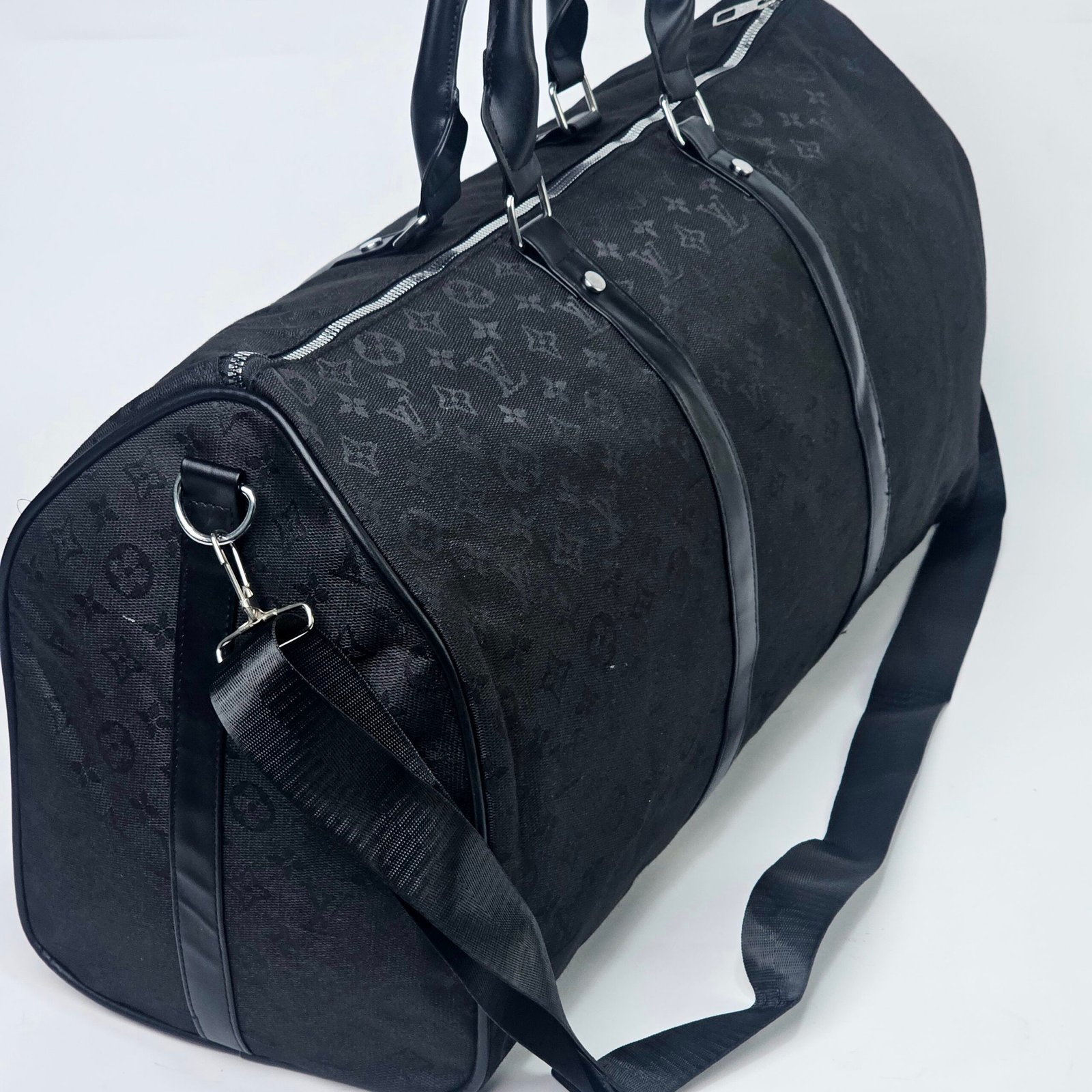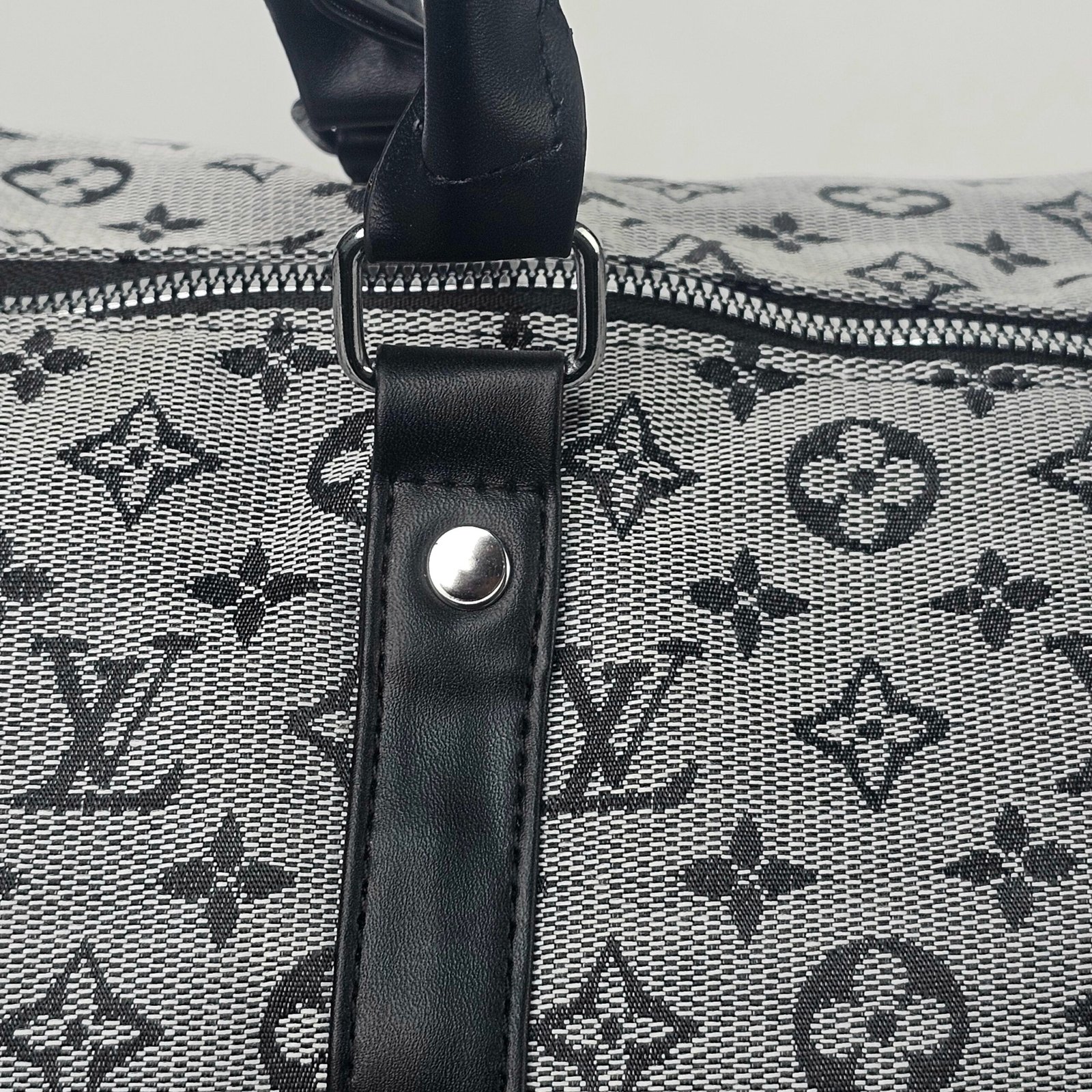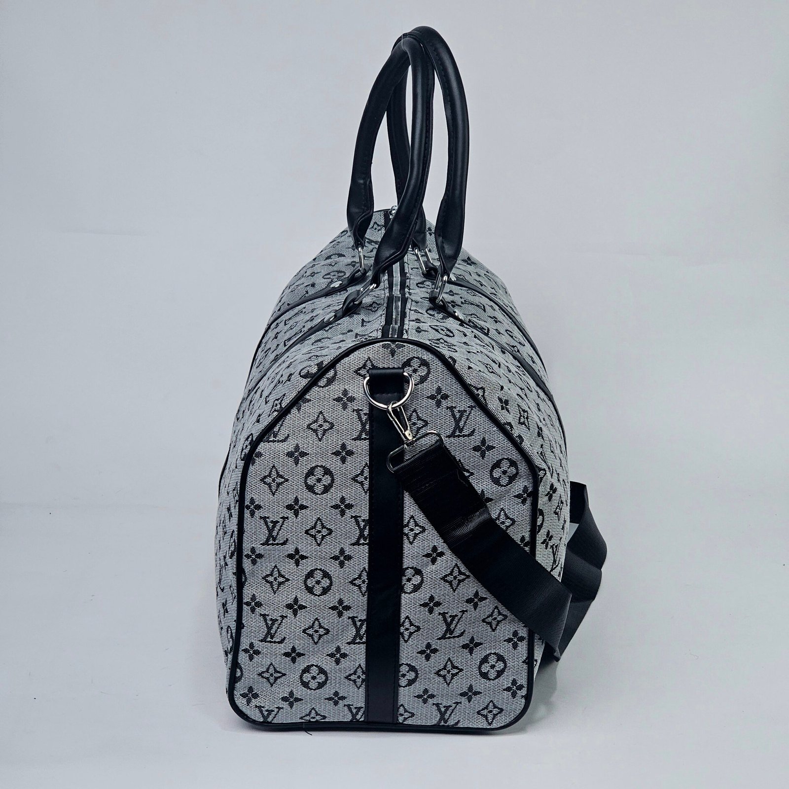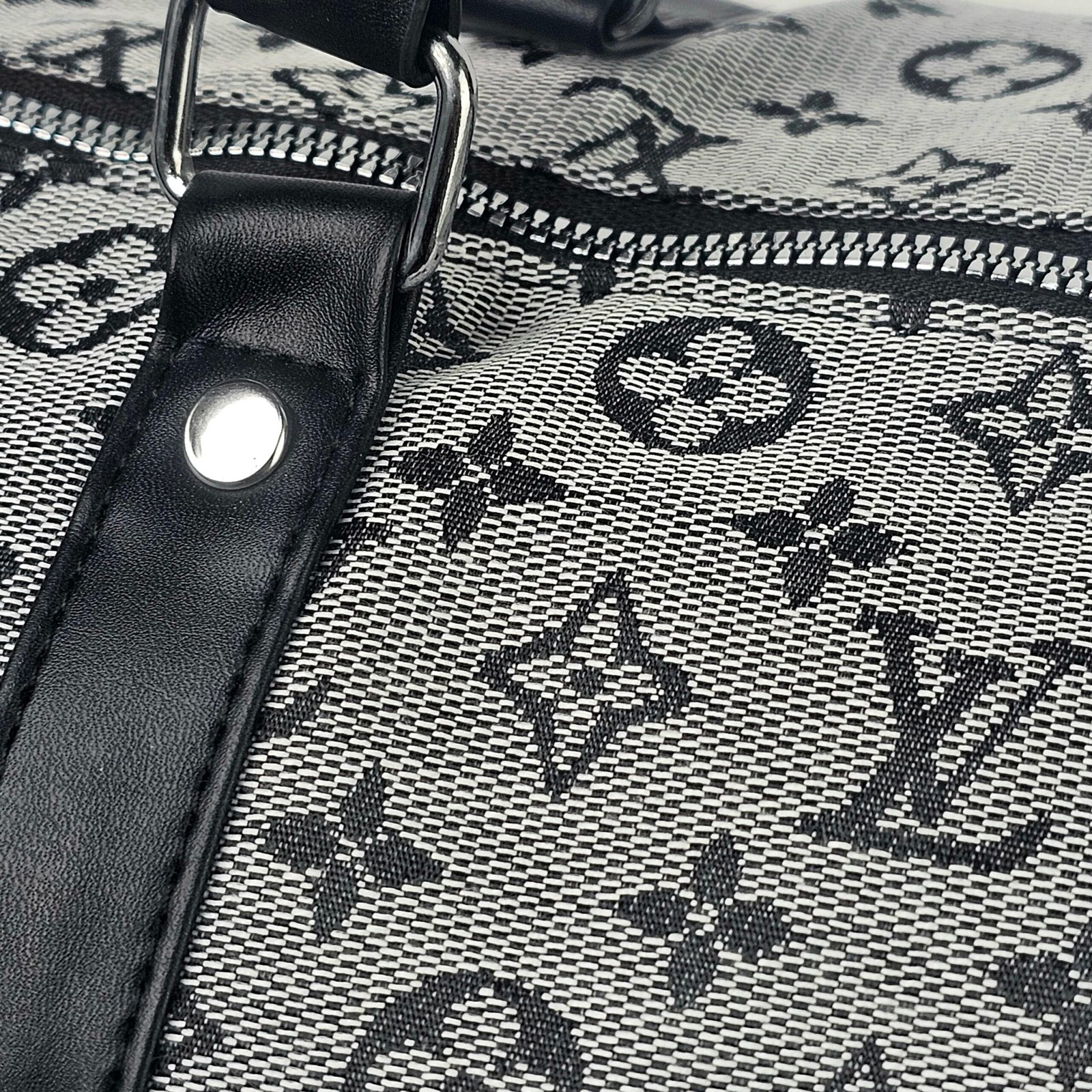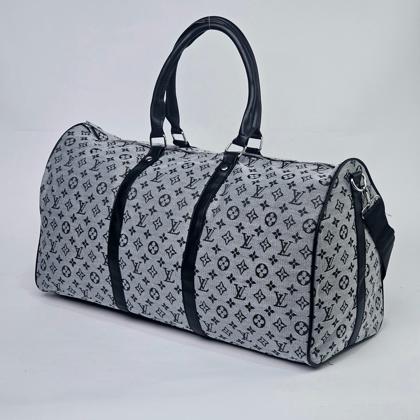 Sac Polochon Gris: Designed with reinforced high-quality canvas and adorned with the iconic Louis Vuitton monogram in black and white, this bag exudes charm. Its adjustable strap and compact handle provide versatile carrying options, complemented by a durable metal zipper closure. The interior is lined with dark fabric, featuring handy pockets for small essentials.
