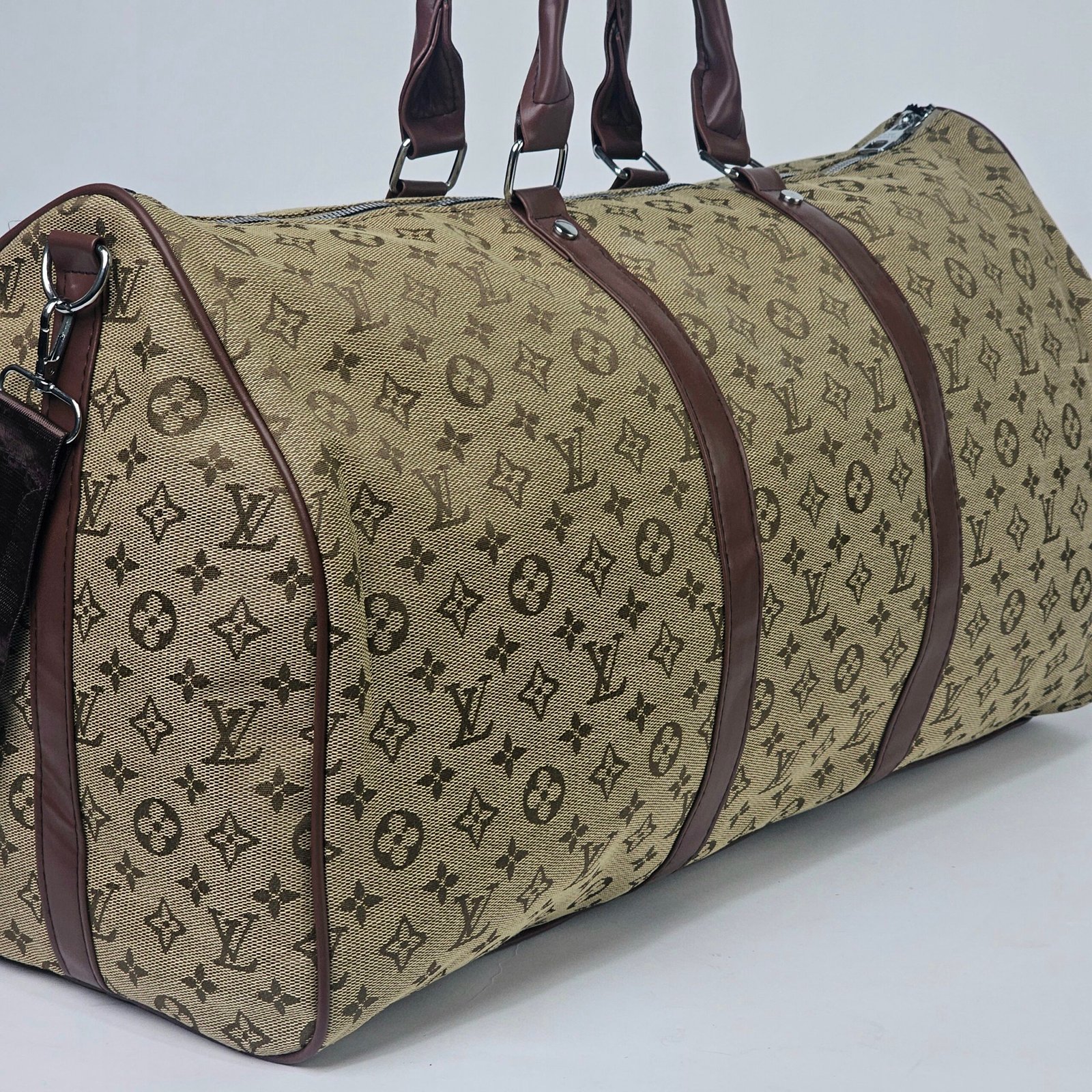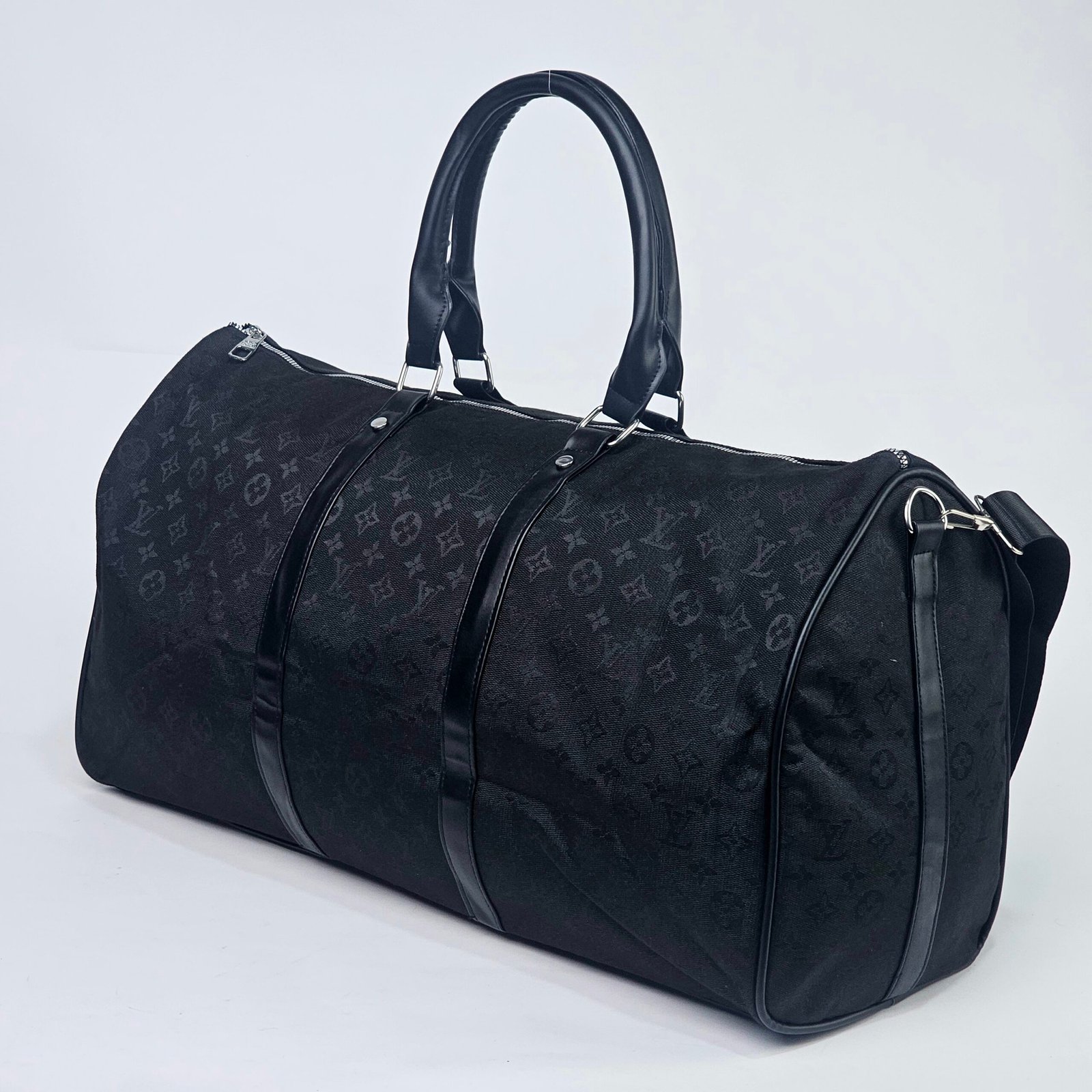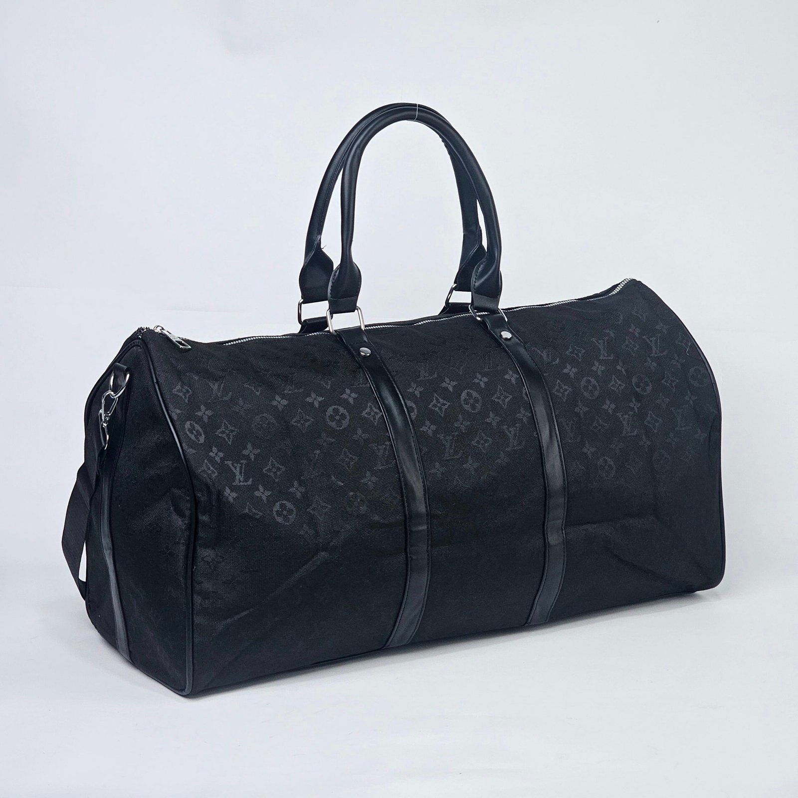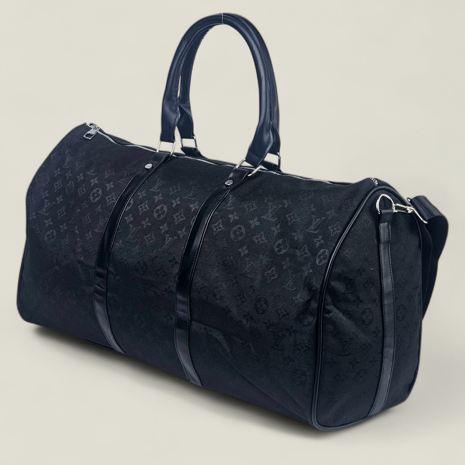 Sac Polochon Gris: Designed with reinforced high-quality canvas and adorned with the iconic Louis Vuitton monogram in black and white, this bag exudes charm. Its adjustable strap and compact handle provide versatile carrying options, complemented by a durable metal zipper closure. The interior is lined with dark fabric, featuring handy pockets for small essentials.