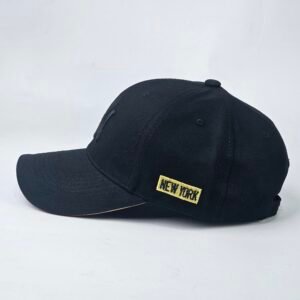 Fabriquée dans une superbe couleur noire, cette casquette arbore fièrement le logo « NY » imprimé en blanc au centre. Le logo tridimensionnel en caoutchouc ou en cuir ajoute une touche premium, tandis que le liseré doré sur la visière et la petite étiquette métallique dorée portant l’inscription « New York » apportent une touche d’élégance et de raffinement.