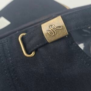 هذه القبعة ليست عملية فحسب، بل هي أيضًا خيار أنيق لجميع عشاق الموضة. تتميز بحلقات معدنية ذهبية اللون لتعليق بطاقة السعر أو غيرها من الإكسسوارات. كما تُذكر معلومات مهمة، مثل “قطن 100%” و”صُنع في الصين”، على الملصق الداخلي.