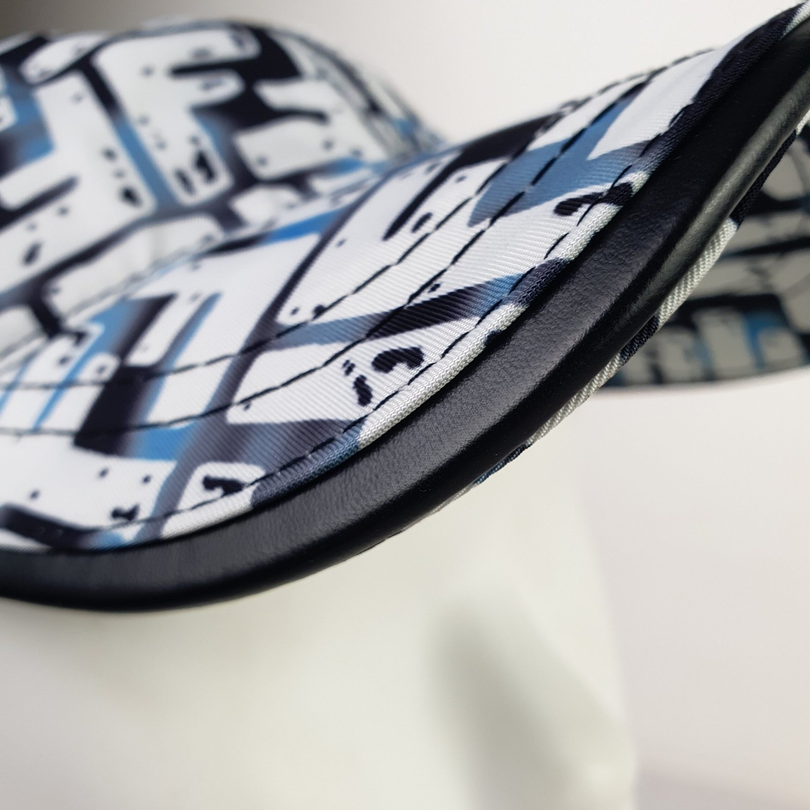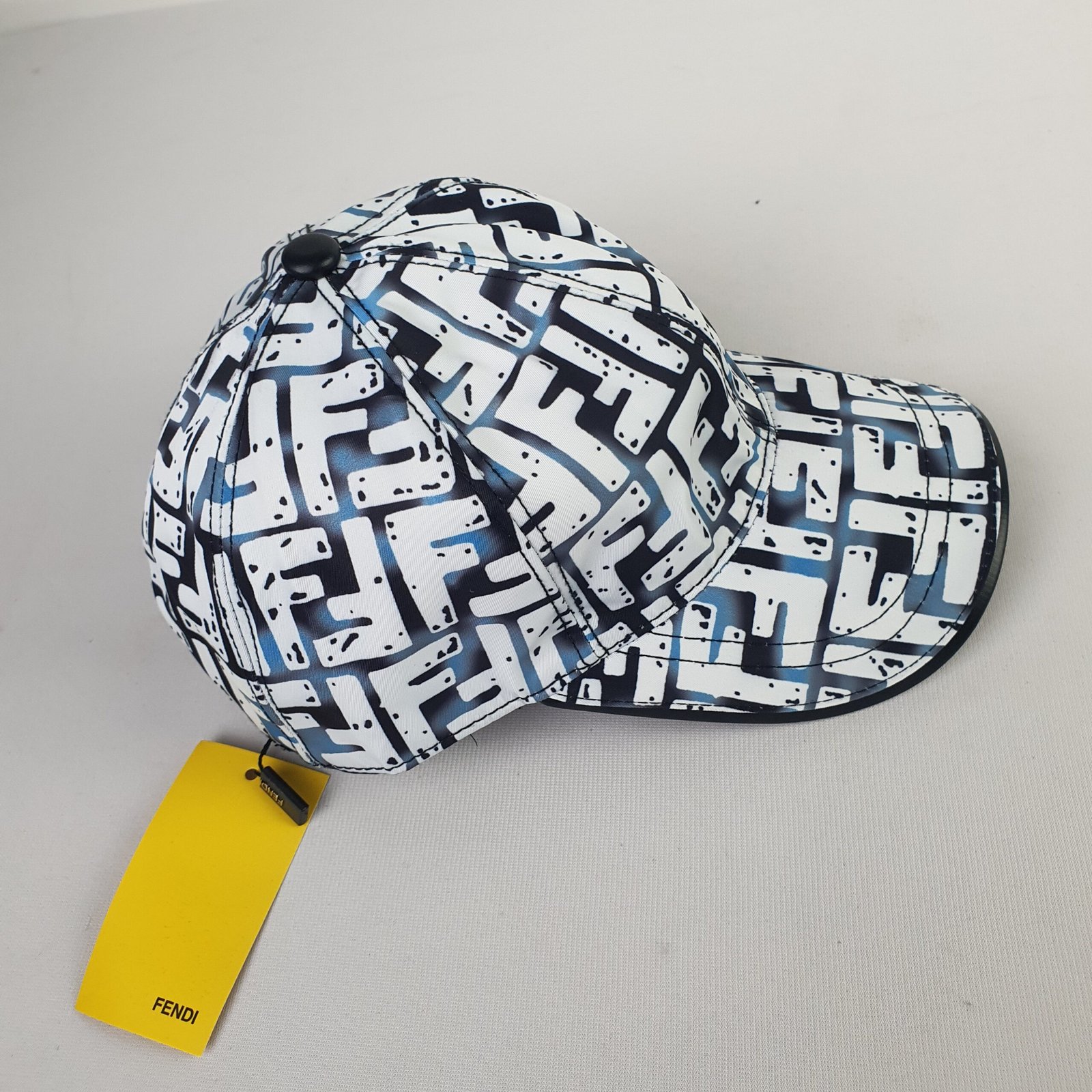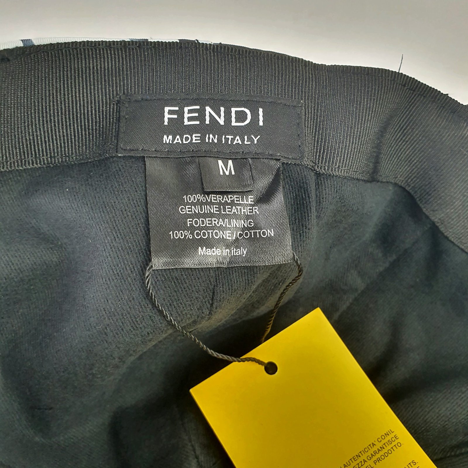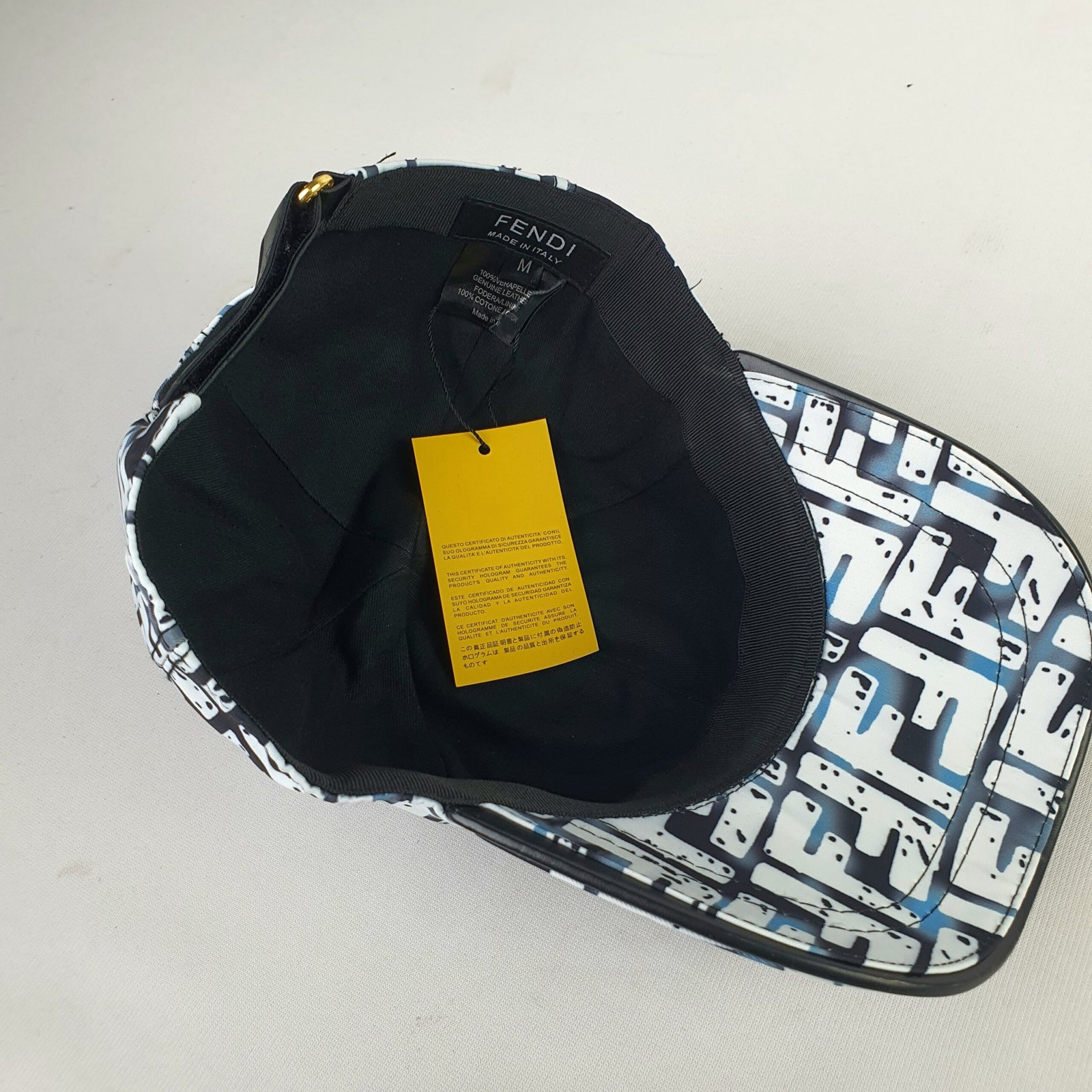 Voici une casquette de luxe signée Fendi, la célèbre marque italienne reconnue pour son savoir-faire inégalé. Son design raffiné mêle subtilement des motifs noirs et blancs, détaillés par des accents bleus saisissants, offrant ainsi une esthétique moderne et captivante. Chaque détail a été soigneusement pensé pour refléter un style à la fois contemporain et intemporel.