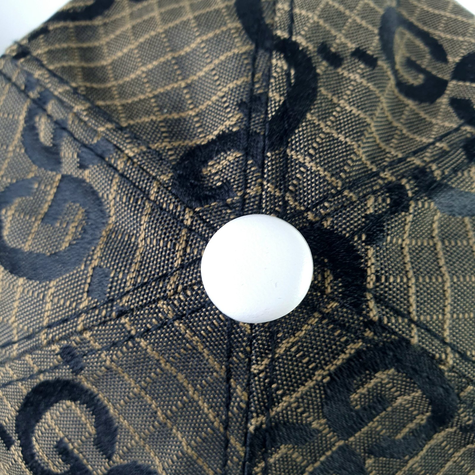 صُنعت قبعة غوتشي من قماش شبكي بني فاخر، وتحمل شعار GG الشهير للعلامة التجارية بطبعة سوداء لافتة. يُبرز هذا التصميم الجريء هوية العلامة التجارية، ويضيف لمسة راقية لا تُضاهى إلى أي إطلالة. يُضفي الغطاء الأبيض تباينًا عصريًا على التصميم الكلاسيكي، مما يضمن مظهرًا جماليًا فريدًا يُكمل مختلف الأنماط.