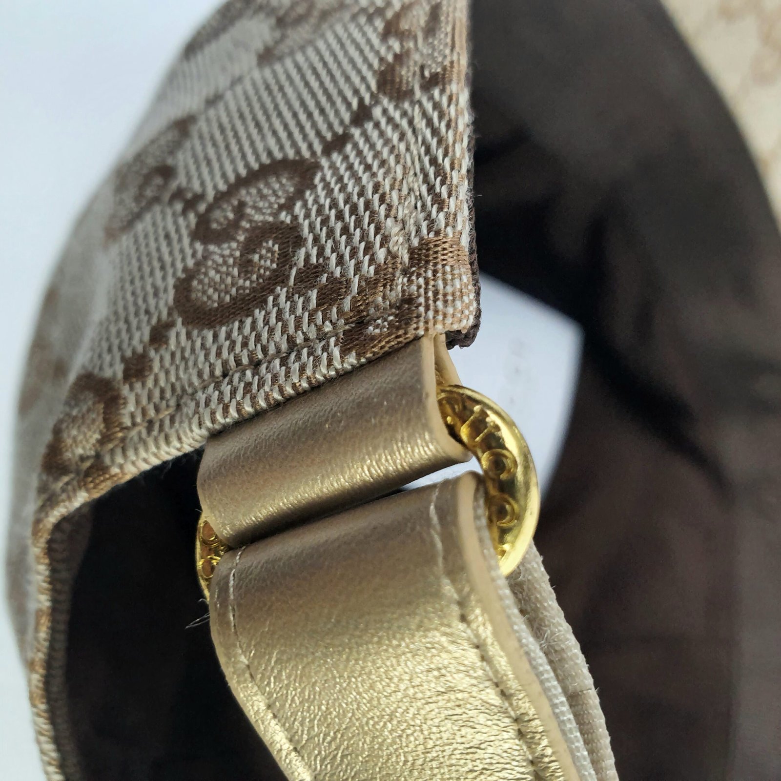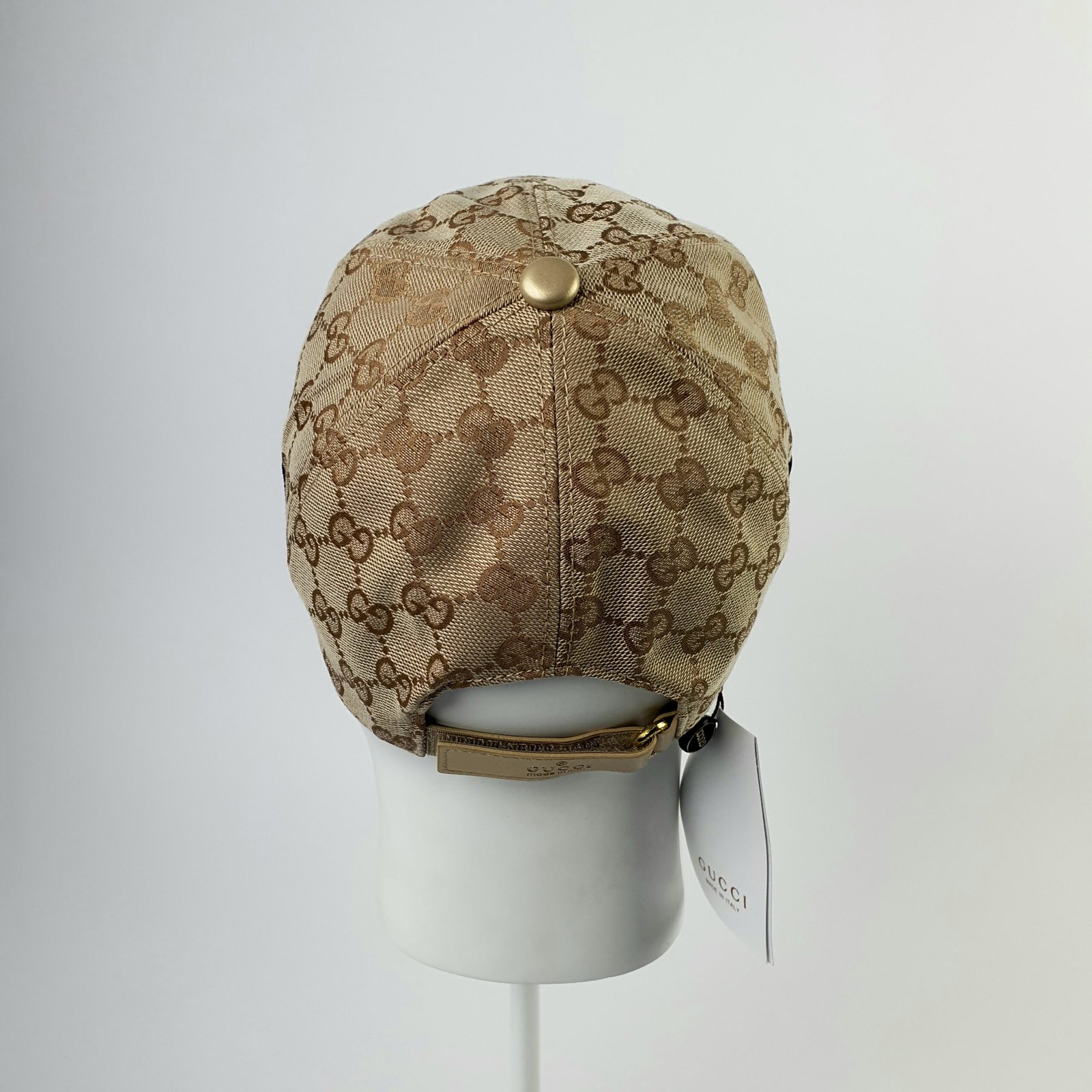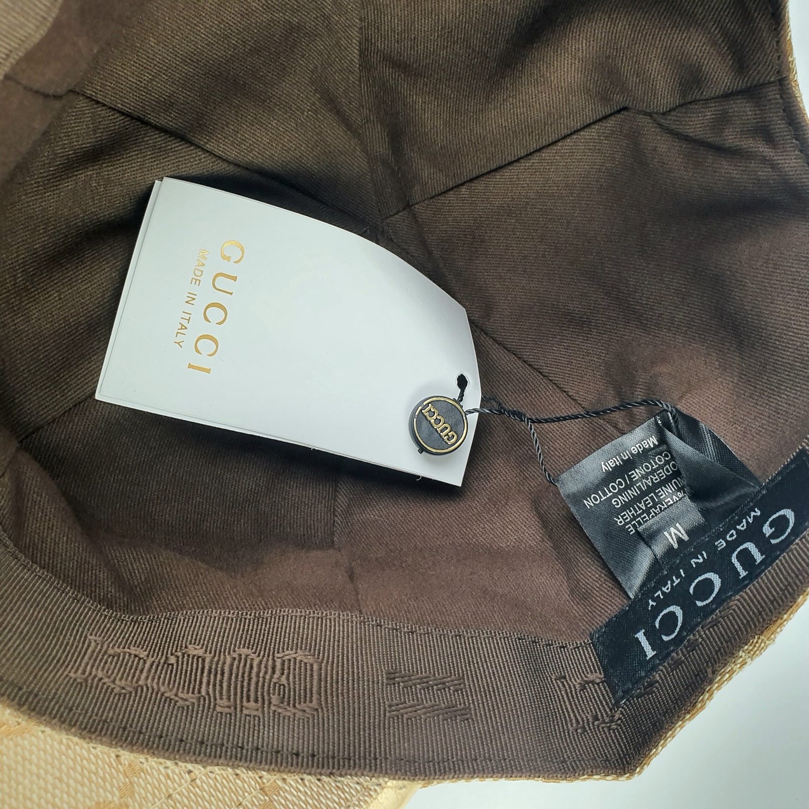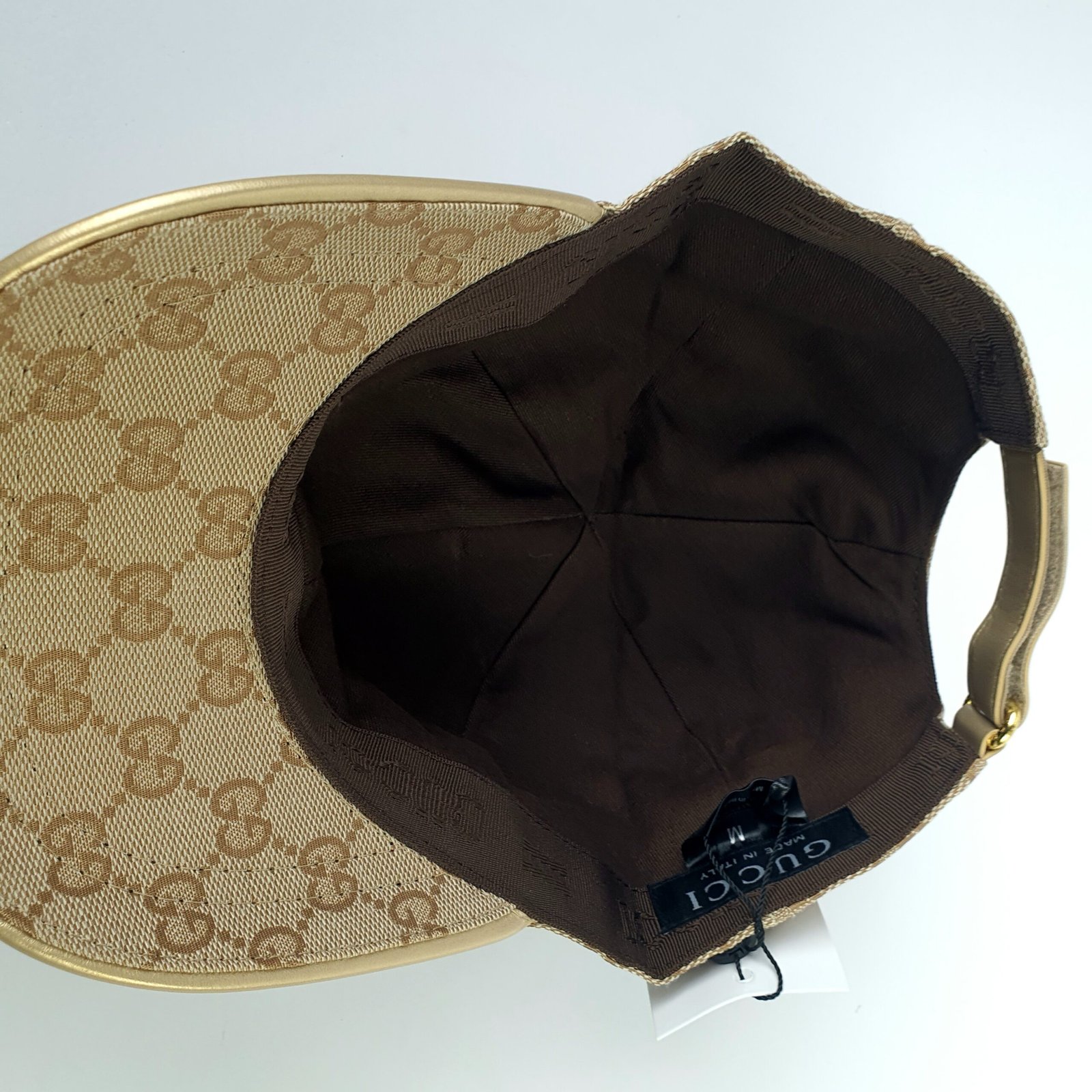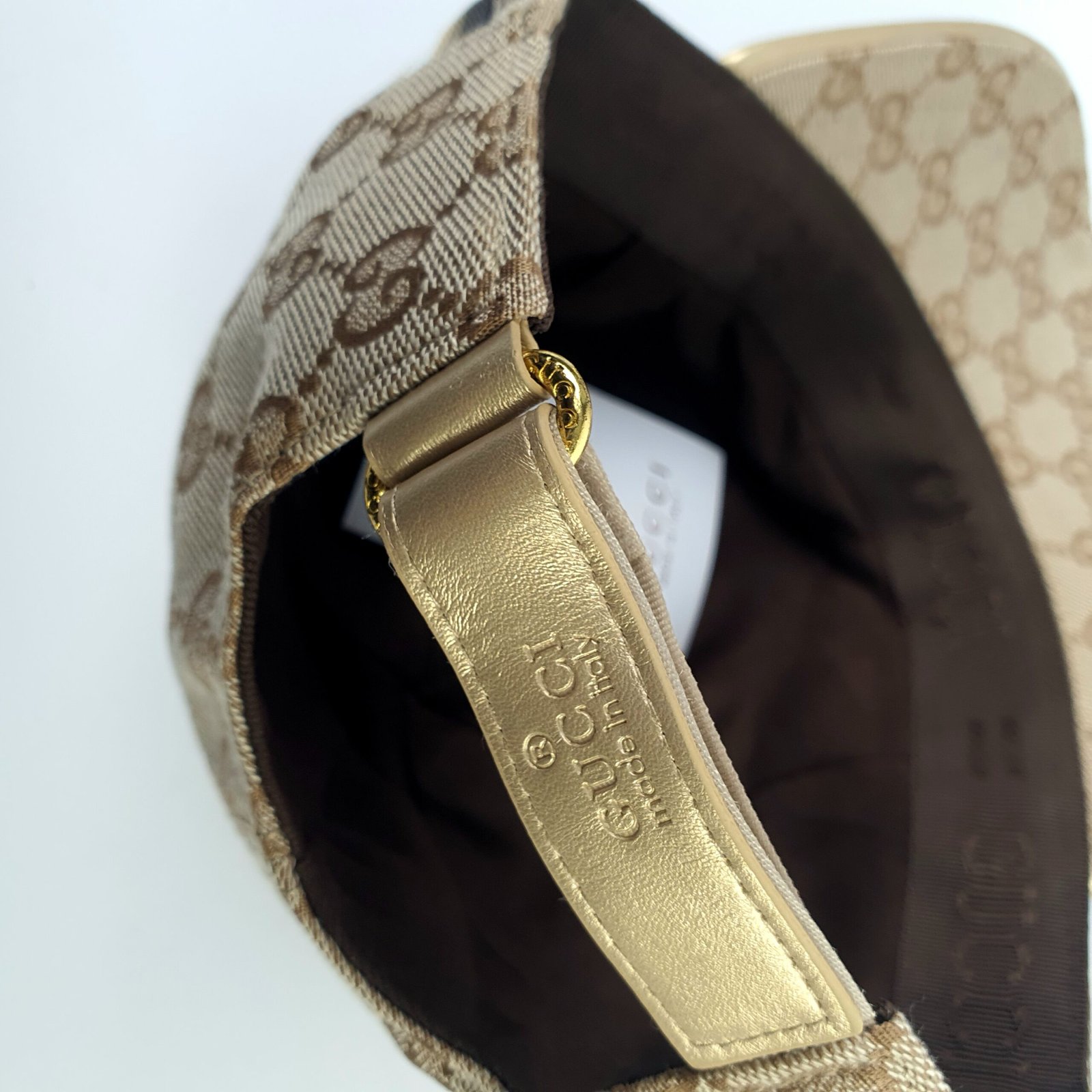 هذه القبعة ليست جميلة فحسب، بل مريحة للغاية أيضًا. حزام الظهر القابل للتعديل، المصنوع من الجلد الذهبي الفاخر، والمُنقوش عليه شعار “GUCCI” وعبارة “صنع في إيطاليا”، يعكس براعة العلامة التجارية واهتمامها بالتفاصيل. الجزء الداخلي مبطن بقماش بني ناعم، ويتميز بشريط مزين بشعار Gucci لتوفير أقصى درجات الراحة والتهوية. سواءً لإطلالة كاجوال أو مناسبة خاصة، تجمع قبعة Gucci هذه بين العملية والأناقة. إنها تُجسد التزام Gucci بتقديم منتجات فاخرة تجمع بين الجودة والتصميم الراقي واللمسة الكلاسيكية المميزة للعلامة التجارية. ارتدِ هذه القبعة لتتألق بثقة وتميز.