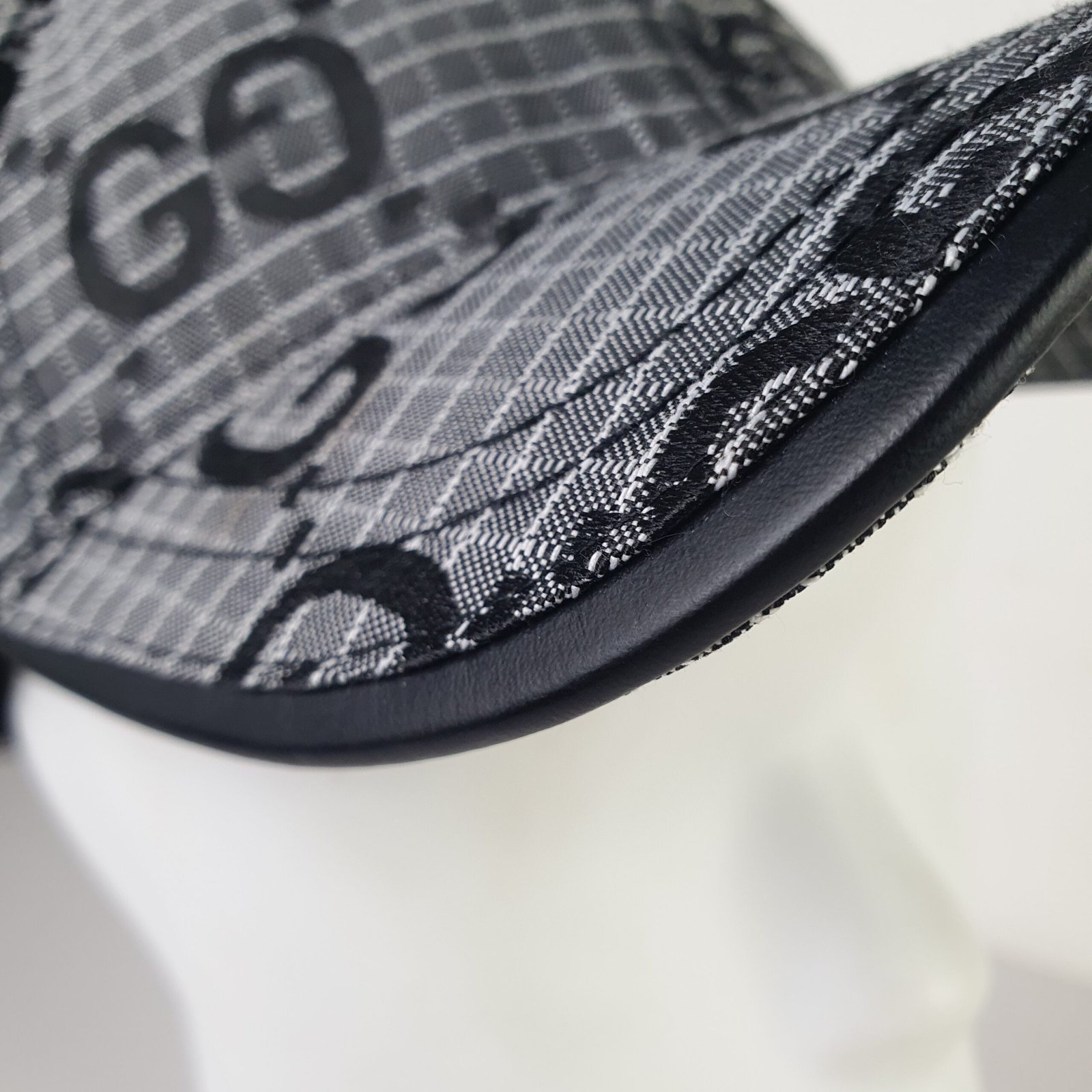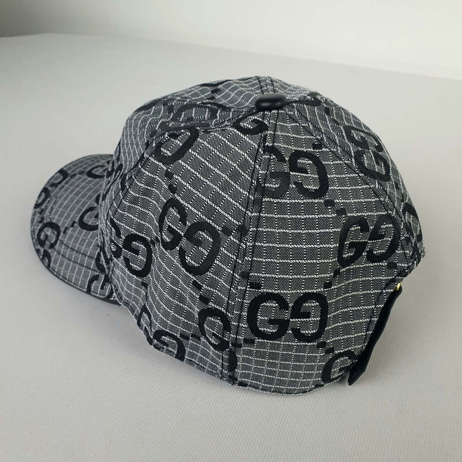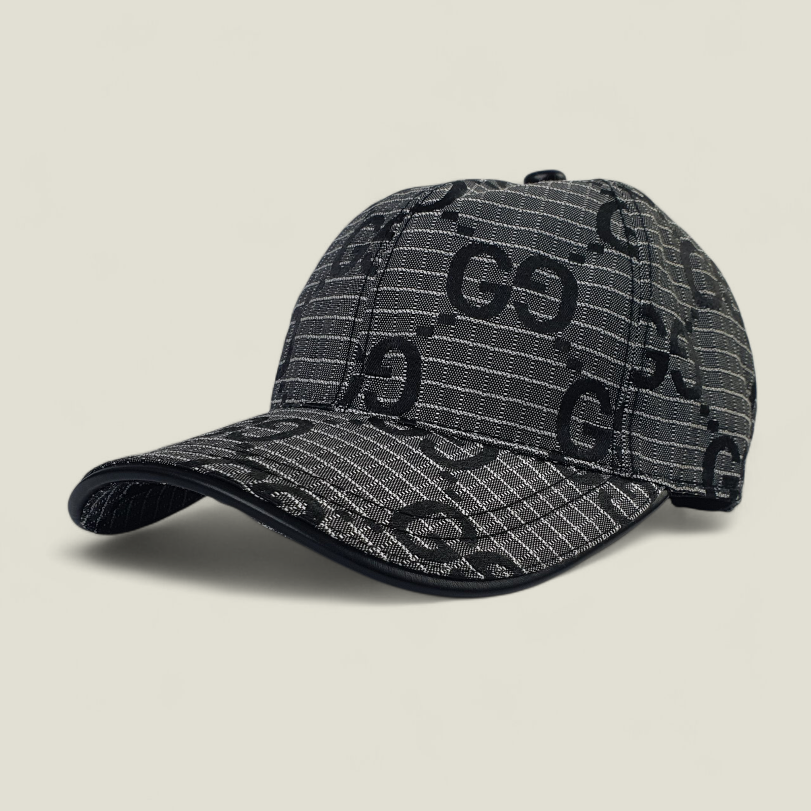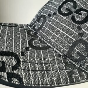 تتميز هذه القبعة الفاخرة بقماشها الرمادي المحبوك المزين بشعار GG الشهير، والمُقدّم بنقوش سوداء أنيقة ومتكررة. تُعزز هذه التفاصيل الراقية هوية العلامة التجارية، حيث تمزج بتناغم بين الجماليات الخالدة والسحر المعاصر. يُزيّن التطريز الأسود الرقيق الحافة، مما يخلق تباينًا راقيًا يُعزز المظهر العام للقبعة.