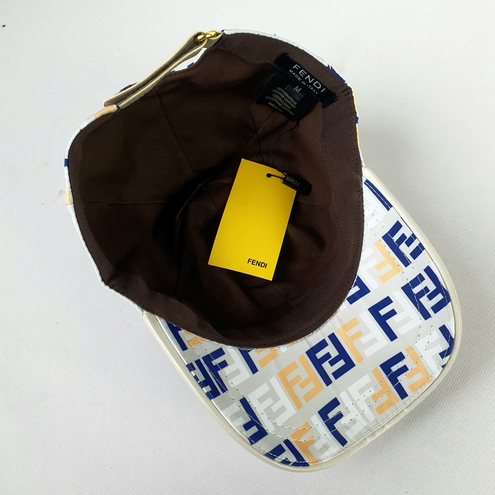 Confectionnée en cuir véritable, cette casquette garantit une durabilité exceptionnelle tout en apportant une touche de luxe. Sa doublure 100 % coton assure un confort optimal, même lors d’une utilisation prolongée. Entièrement fabriquée en Italie, elle est un témoignage du savoir-faire artisanal et de l’élégance propre à Fendi. Chaque détail a été soigneusement pensé pour offrir une expérience de port premium, du design à la sélection des matériaux.