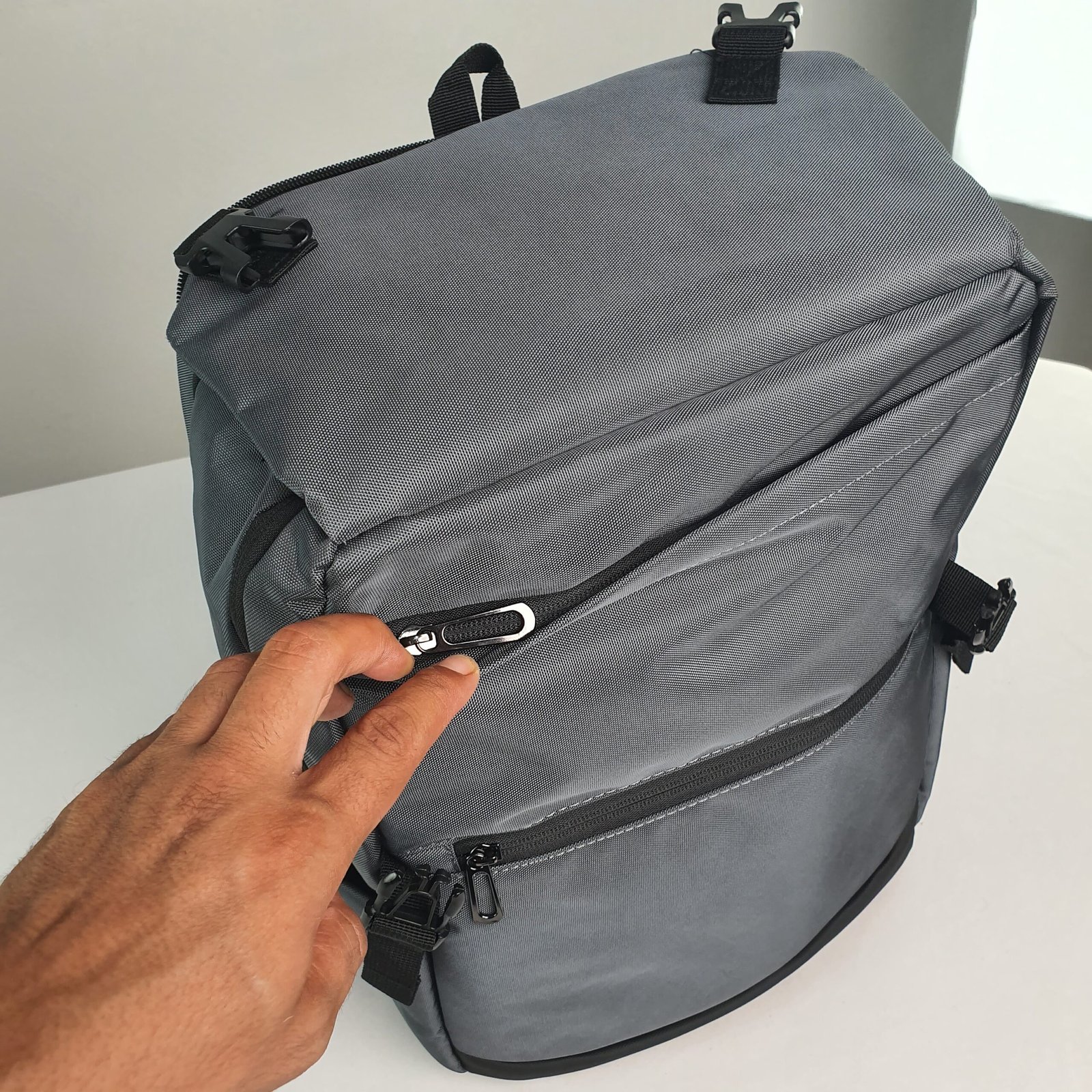Disponible en deux couleurs intemporelles — noir classique et gris élégant — le sac Cancello s’adapte facilement à vos préférences personnelles. Fabriqué en polyester imperméable, il est conçu pour résister à l’usure tout en protégeant vos affaires contre les intempéries. L’intérieur doublé de matériau doux et l’extérieur robuste garantissent la sécurité de vos objets précieux et électroniques. En outre, le haut du sac est confectionné dans un matériau distinctif et renforcé, accentuant davantage son aspect premium.