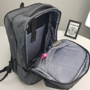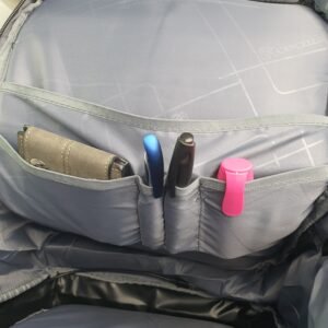 • جيوب داخلية: جيوب مخصصة للكمبيوتر المحمول أو الجهاز اللوحي، بالإضافة إلى جيوب للأغراض الصغيرة كالهاتف والمحفظة والمفاتيح.