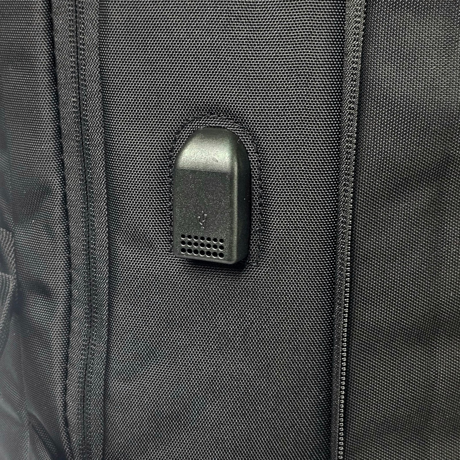 تتيح المقابض العلوية والجانبية خيارات متعددة لحمل الحقيبة، بينما يوفر منفذ USB المدمج حلاً مثاليًا لشحن أجهزتك أثناء التنقل. علاوة على ذلك، تضمن المشابك المعدنية إغلاقًا محكمًا، مما يضفي عليها مزيدًا من المتانة والموثوقية.