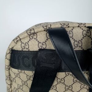 Idéal pour une utilisation quotidienne, le sac à dos Gucci GG Supreme assure un confort optimal grâce à sa bandoulière rembourrée et réglable. Le dos est doté d’un empiècement en mesh, favorisant une excellente ventilation lors des déplacements. La poignée supérieure en cuir ajoute une option pratique pour un porté main. Une poche zippée extérieure permet un accès rapide à vos indispensables.