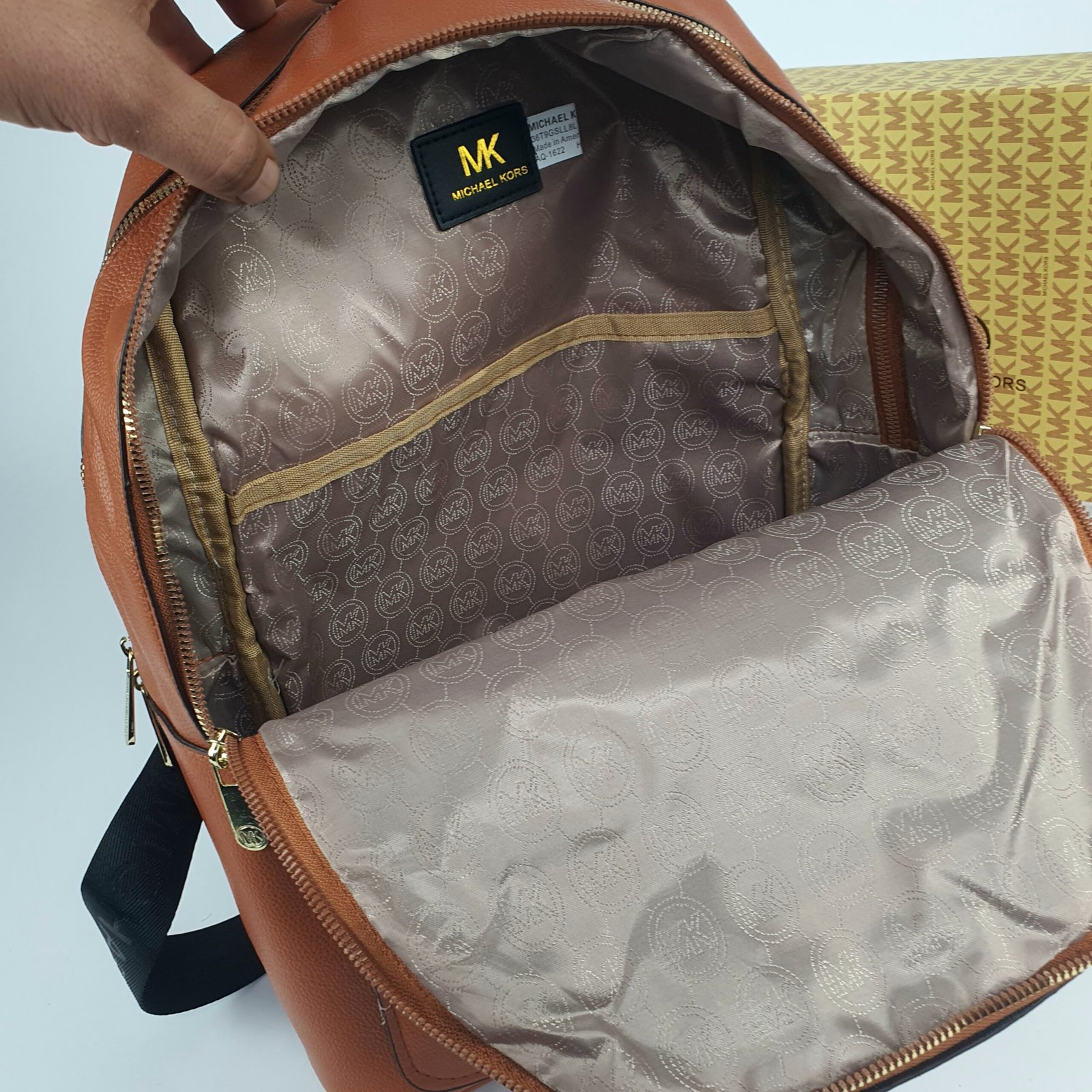 Whether you’re heading to the office, attending classes, or embarking on a short trip, this backpack seamlessly combines practicality and luxury. Its satin-lined interior, adorned with the signature MK logo, ensures your belongings stay protected while reflecting the sophisticated identity of the Michael Kors brand. The polished gold zippers and logo-engraved pull tabs add a subtle yet striking touch, showcasing the brand’s commitment to premium craftsmanship.