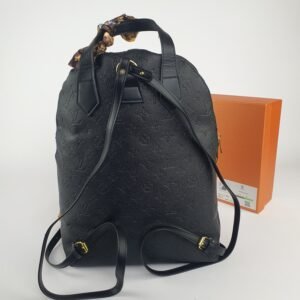 Ce modèle se distingue par ses détails méticuleusement conçus pour répondre à la fois aux besoins esthétiques et pratiques. Les finitions métalliques éclatantes, disponibles en coloris dorés, se marient harmonieusement avec le cuir noir pour créer un contraste saisissant. Les fermetures éclair dorées, équipées de tirettes subtilement gravées du nom de la marque, garantissent durabilité et élégance. Sur le devant, des chaînes dorées ornées du logo LV ajoutent une allure emblématique, tandis qu’un mousqueton relié à une chaînette latérale rappelle avec finesse l’héritage intemporel de Louis Vuitton.