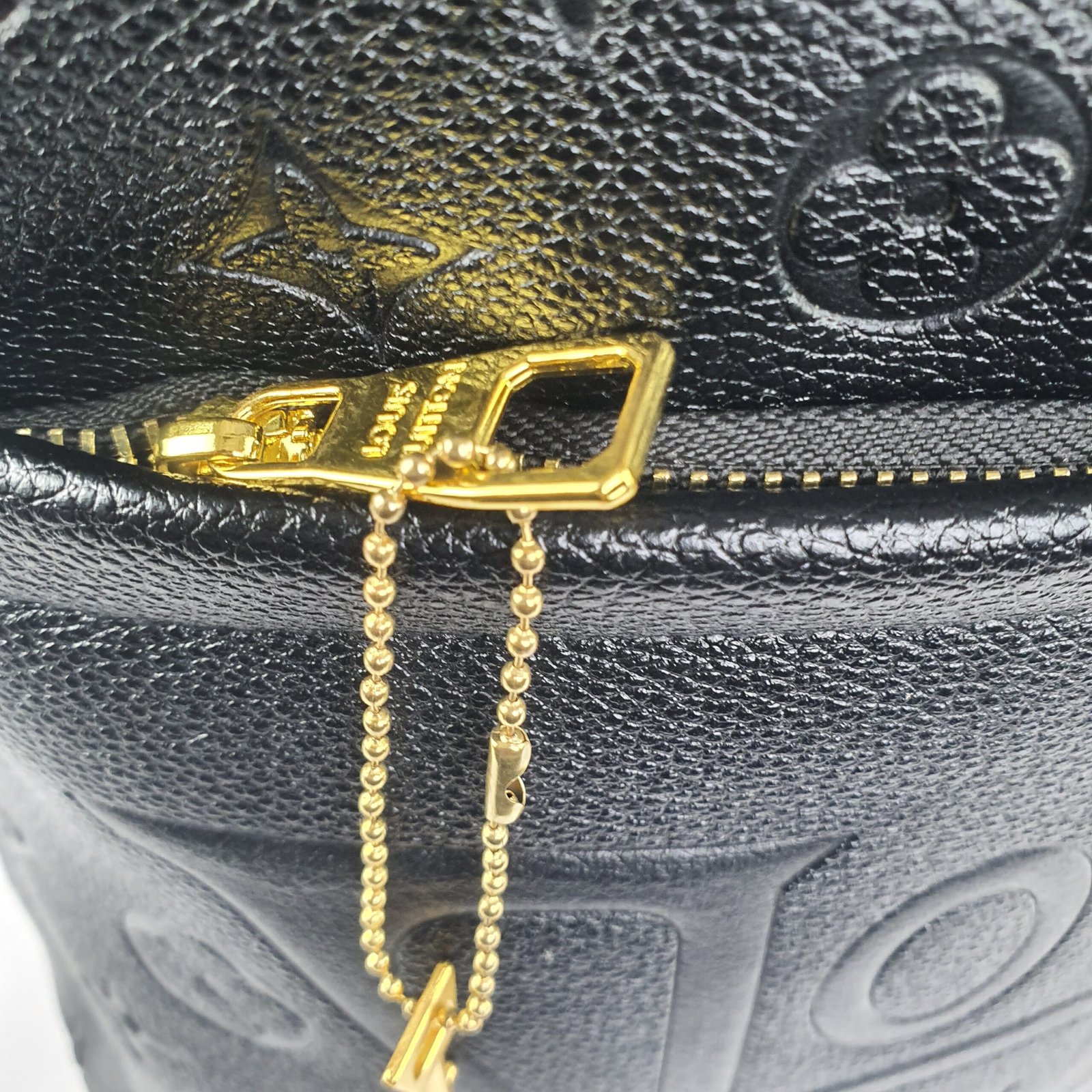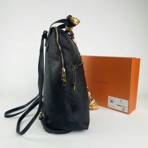 Ce modèle se distingue par ses détails méticuleusement conçus pour répondre à la fois aux besoins esthétiques et pratiques. Les finitions métalliques éclatantes, disponibles en coloris dorés, se marient harmonieusement avec le cuir noir pour créer un contraste saisissant. Les fermetures éclair dorées, équipées de tirettes subtilement gravées du nom de la marque, garantissent durabilité et élégance. Sur le devant, des chaînes dorées ornées du logo LV ajoutent une allure emblématique, tandis qu’un mousqueton relié à une chaînette latérale rappelle avec finesse l’héritage intemporel de Louis Vuitton.