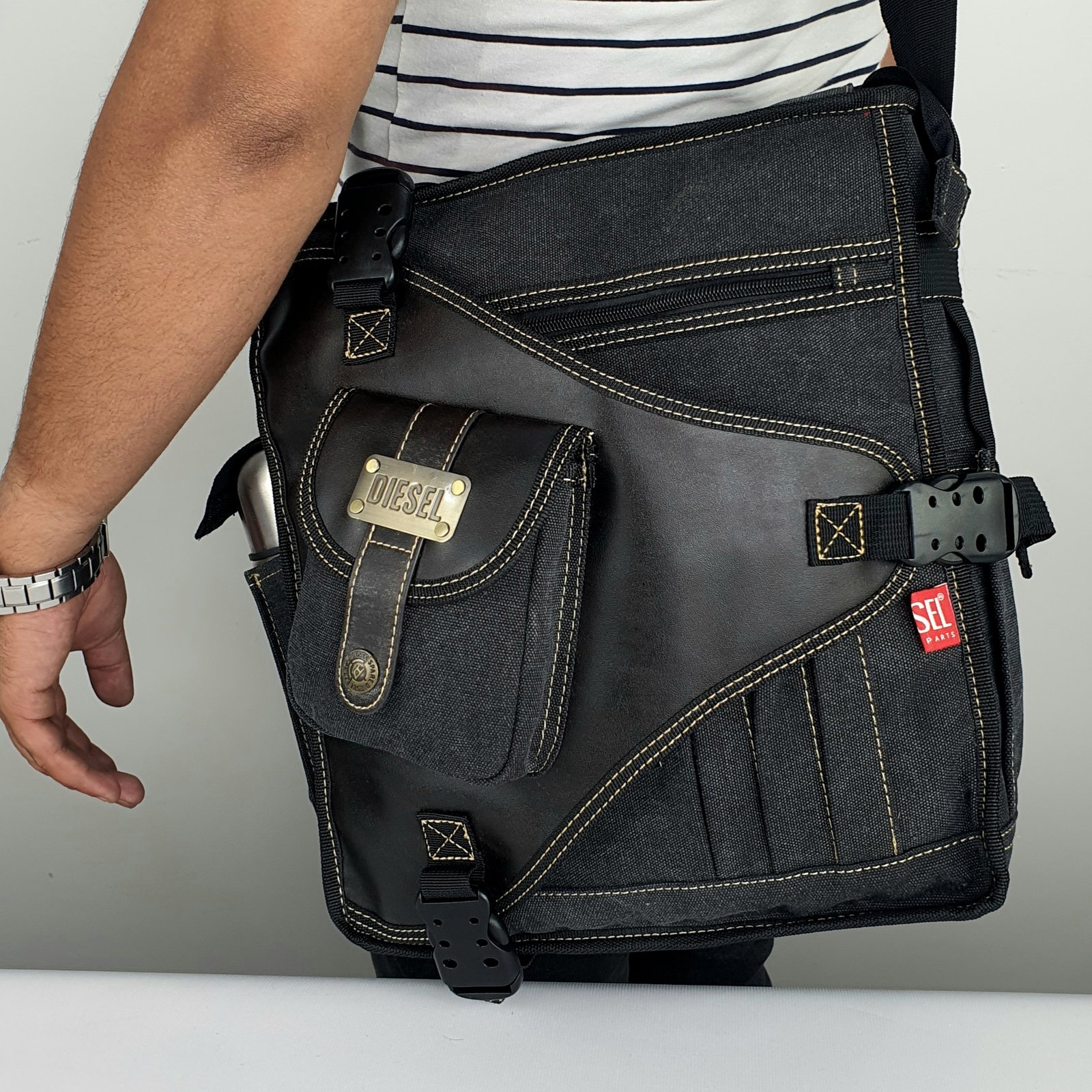 sac bandoulière DIESEL cow-boy Jean et cuir la haute qualité noir