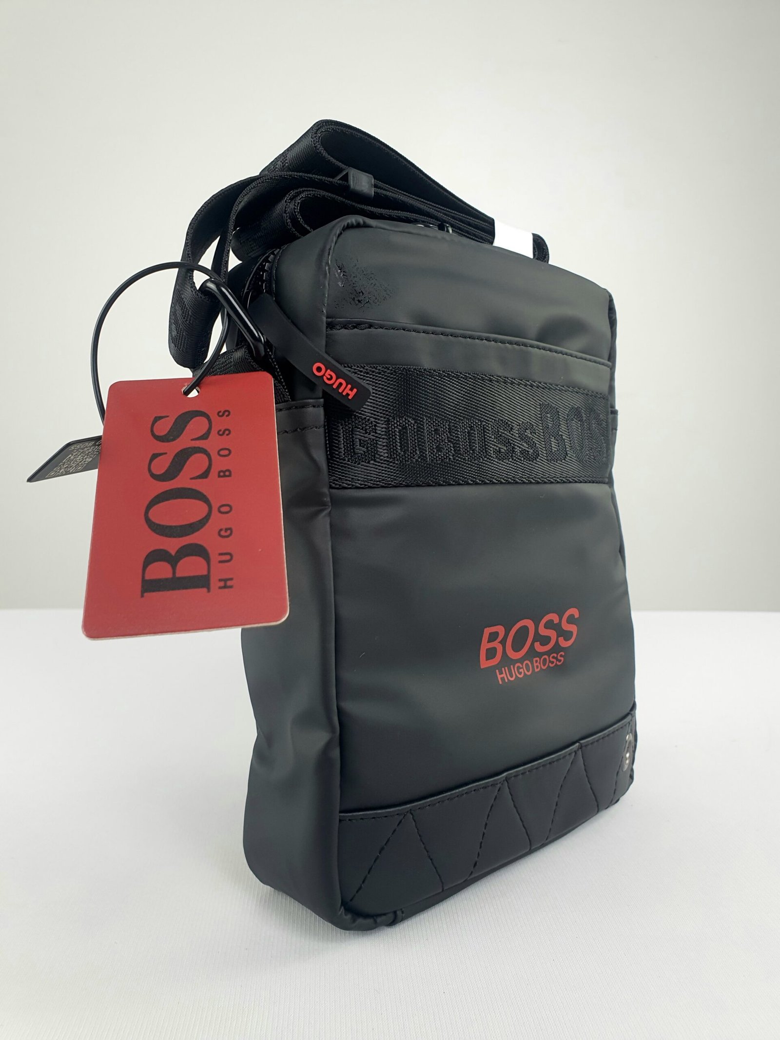 هوغو بوس رمزٌ للجودة والرقي، وهذه الحقيبة ليست استثناءً. مزينة بأجزاء معدنية فضية أنيقة وشعار العلامة التجارية، تُجسّد الفخامة العصرية ببراعة. يُضفي الشريط المميز أسفل الشعار لمسةً فريدة، مُبرزًا حصرية هذا المنتج المُصمّم للرجل العصري المُتميّز.
